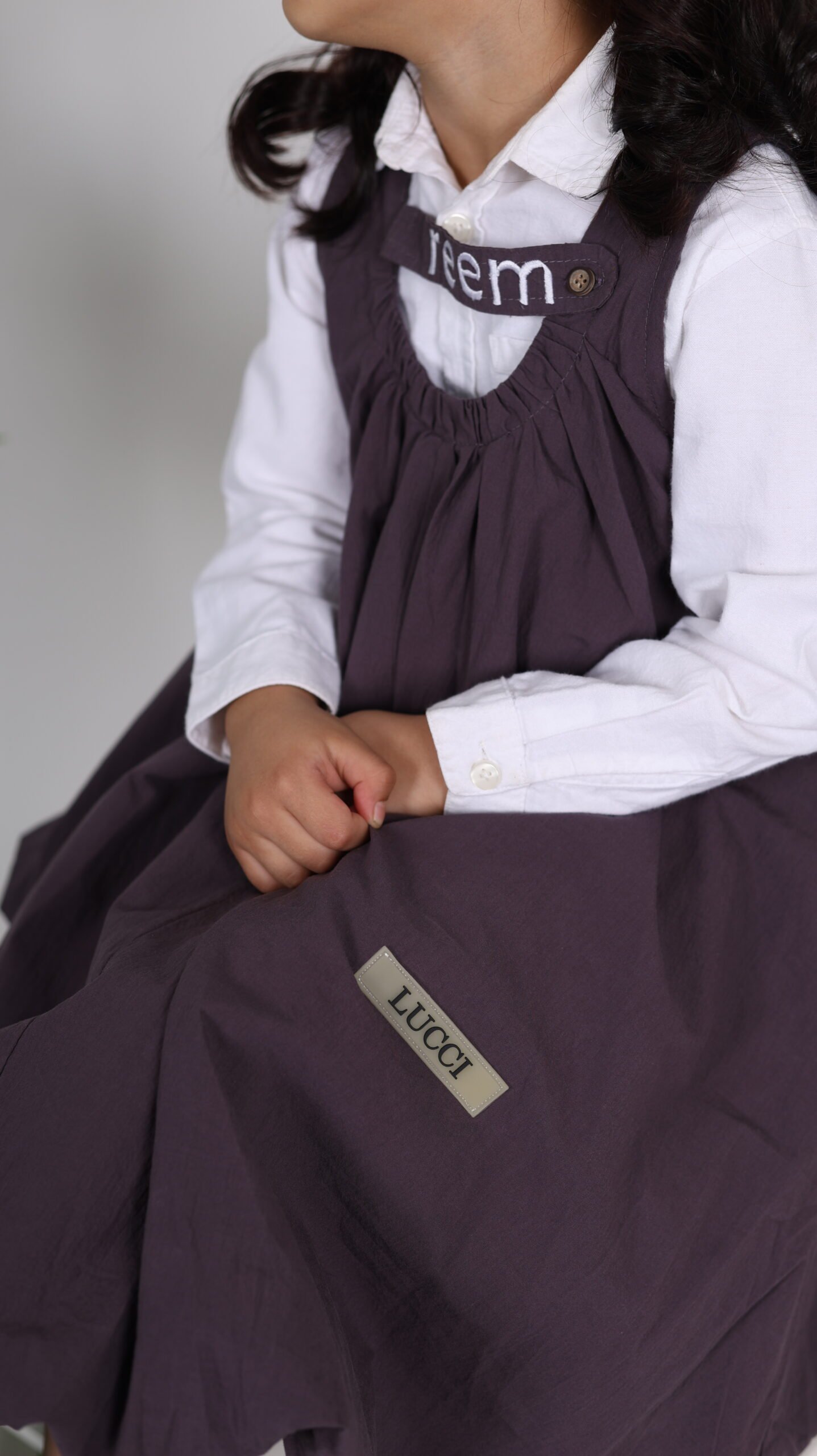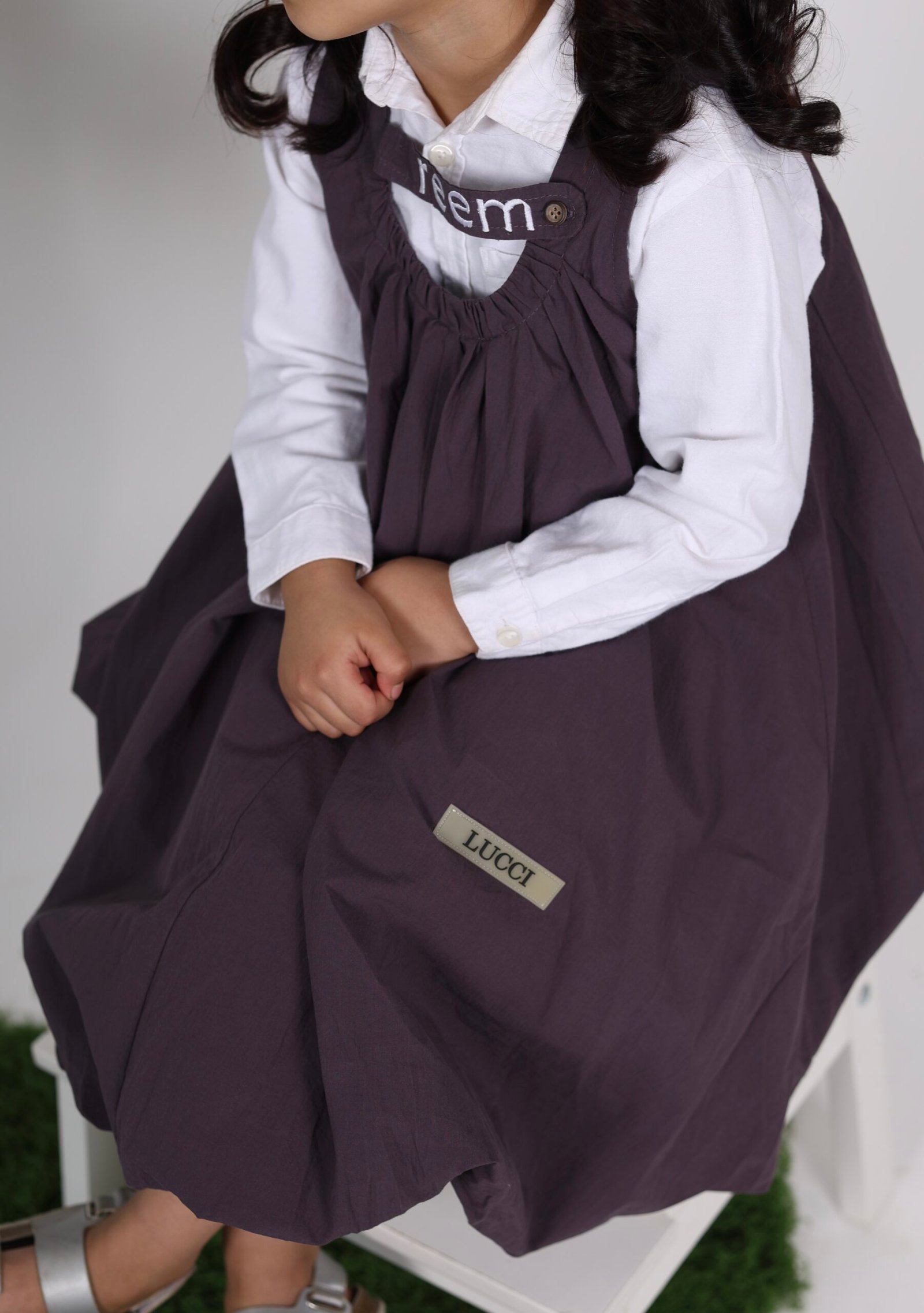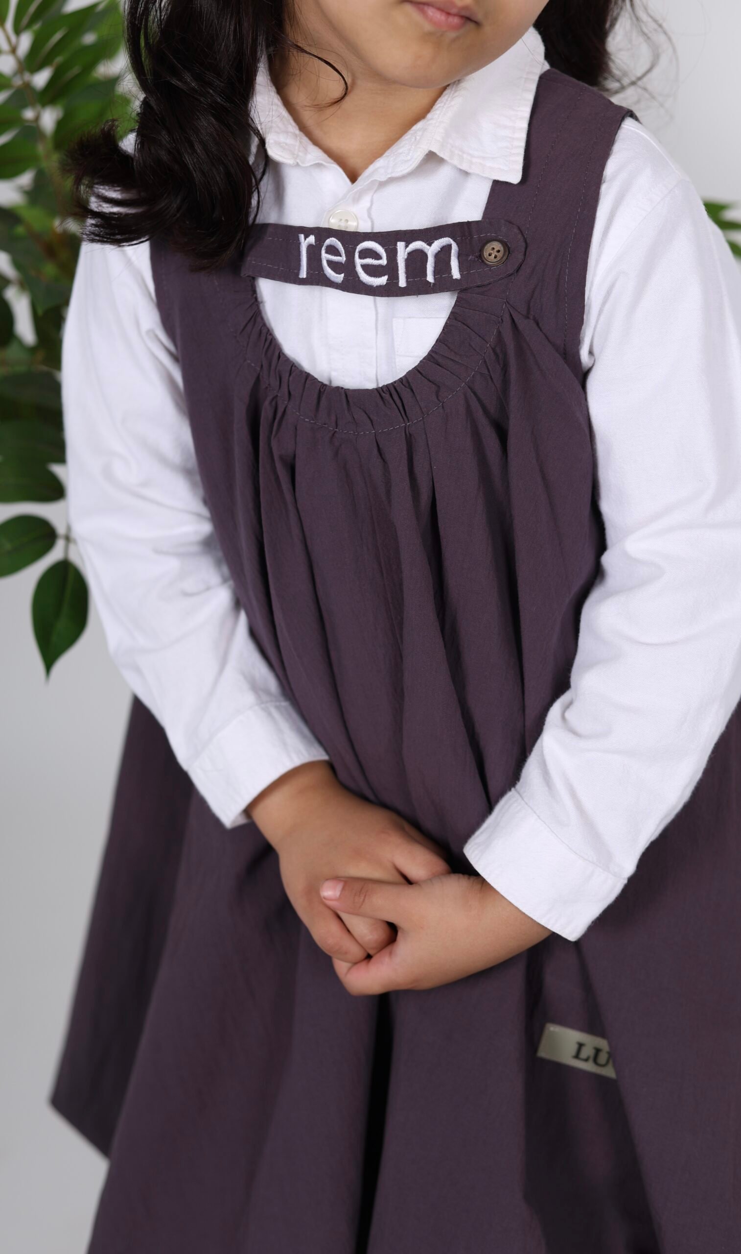 فستان بلون بنفسجي بدون قميص واضافة اسم البنت للتطريز
