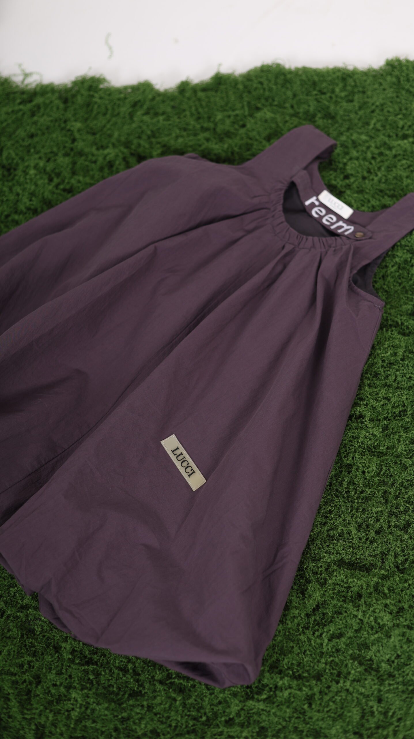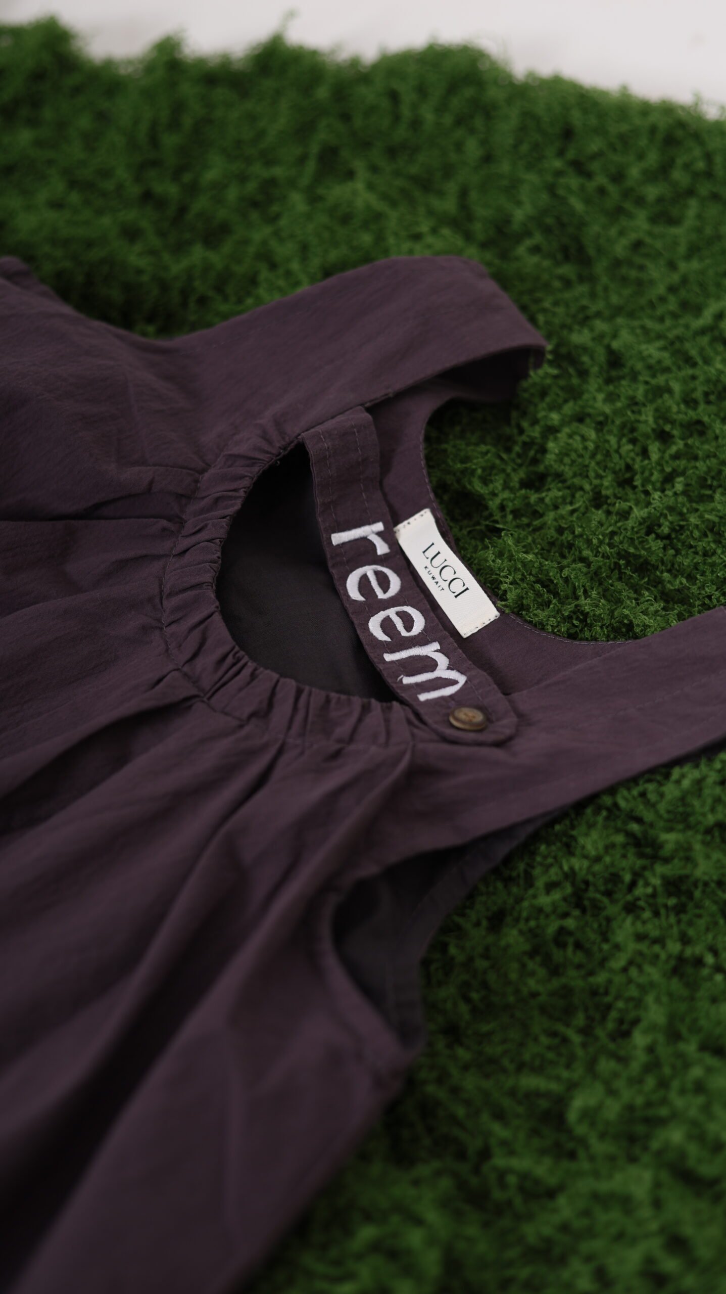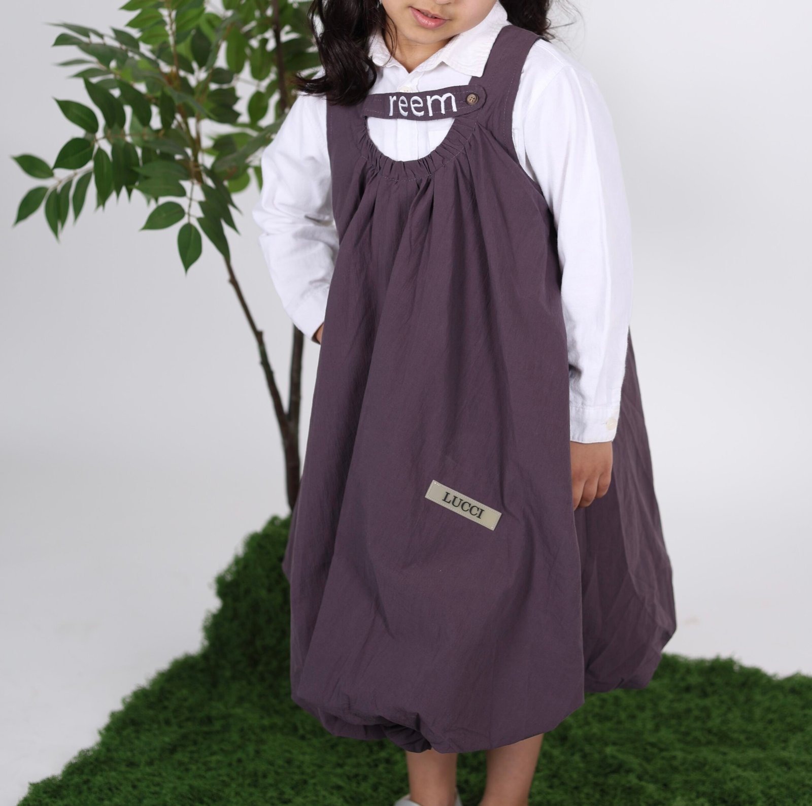 فستان بلون بنفسجي بدون قميص واضافة اسم البنت للتطريز