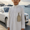 دشداشة عيد مخطط لون كريمي