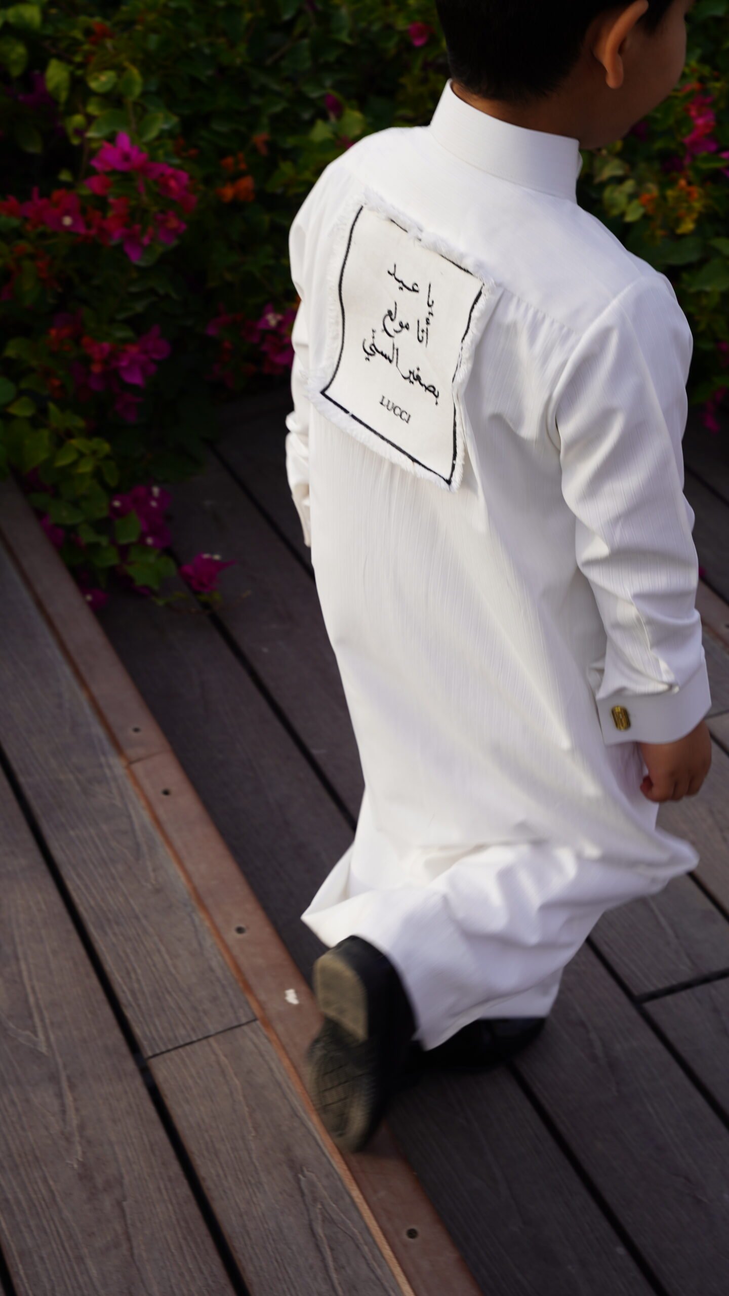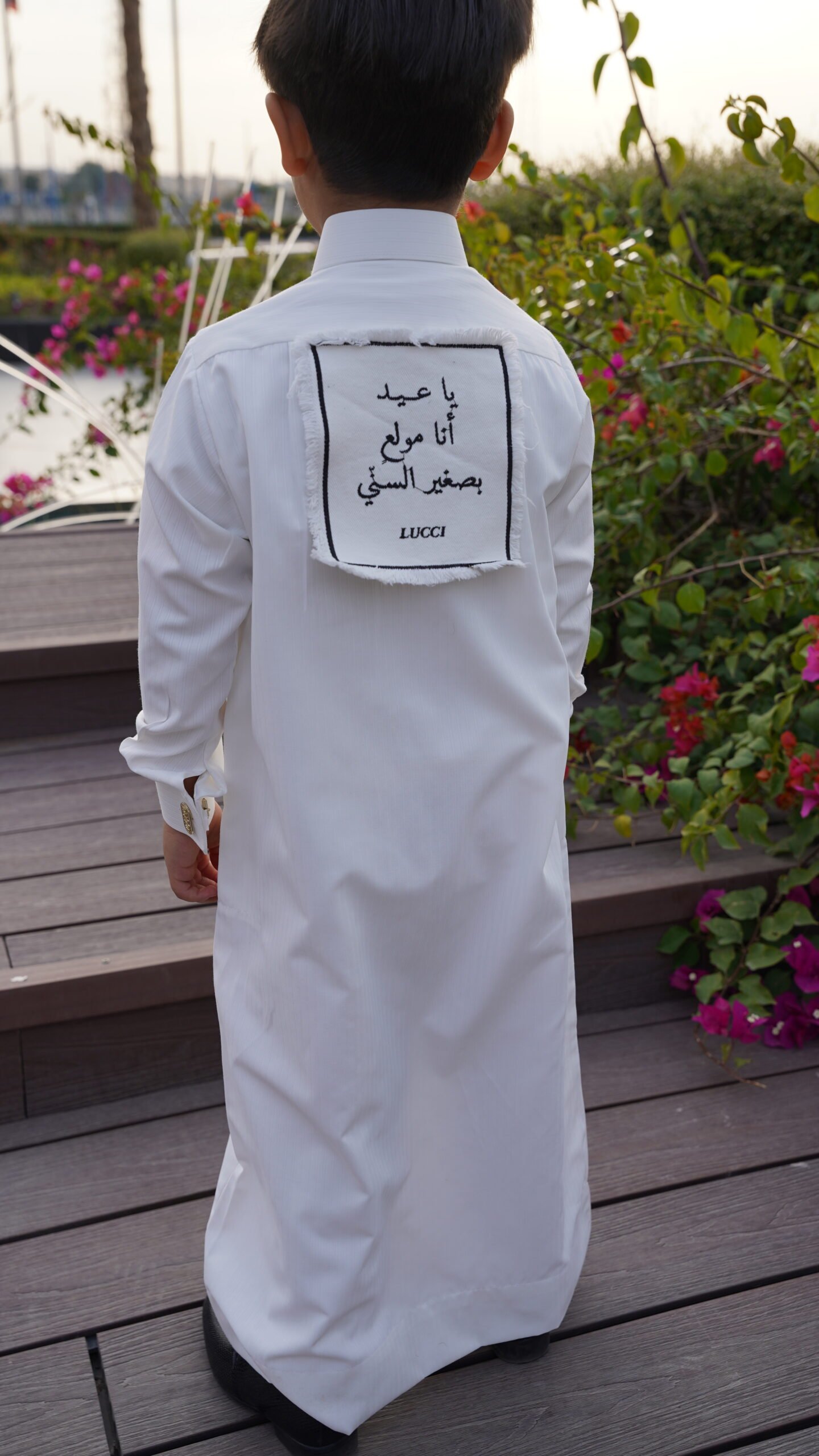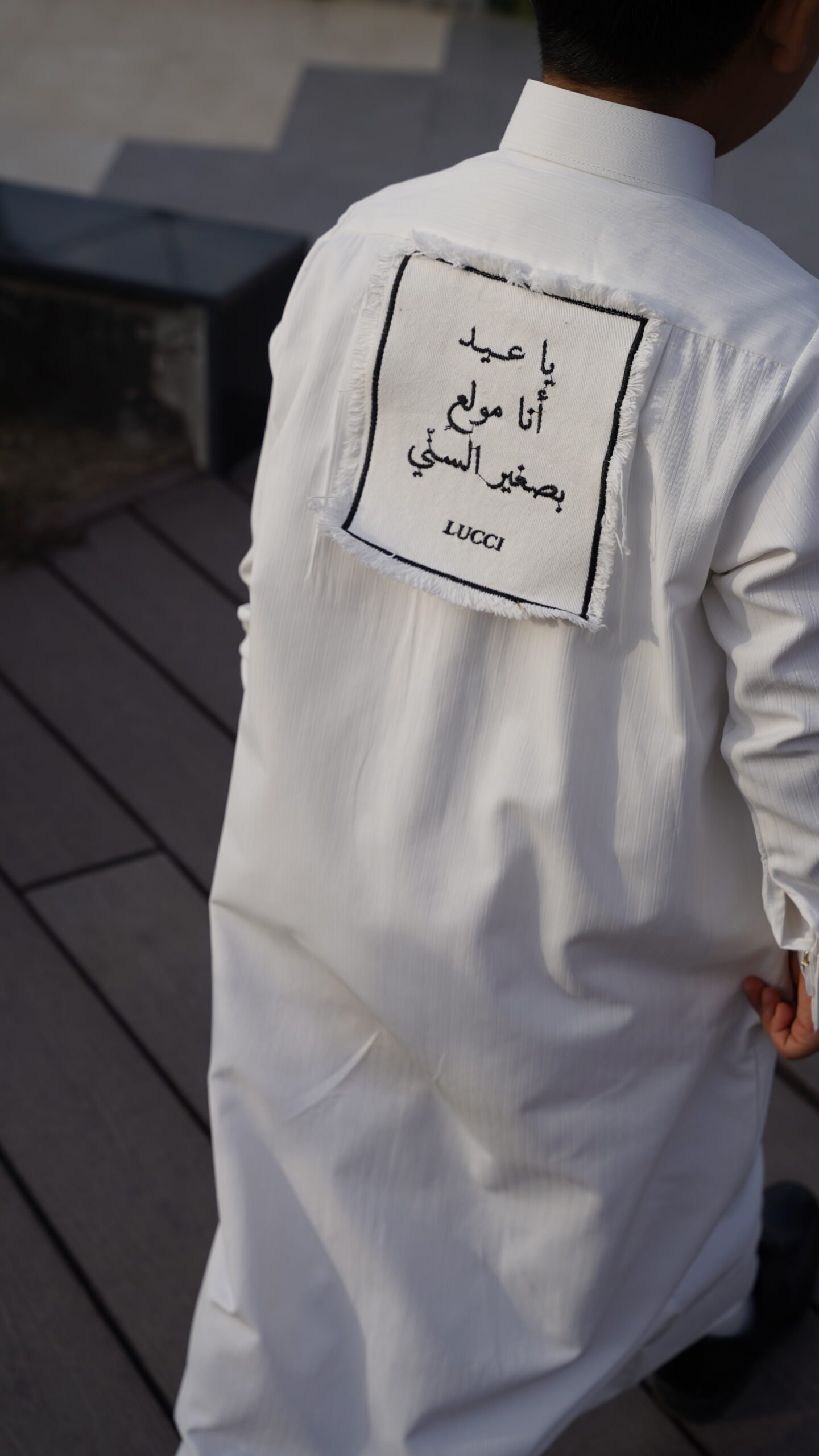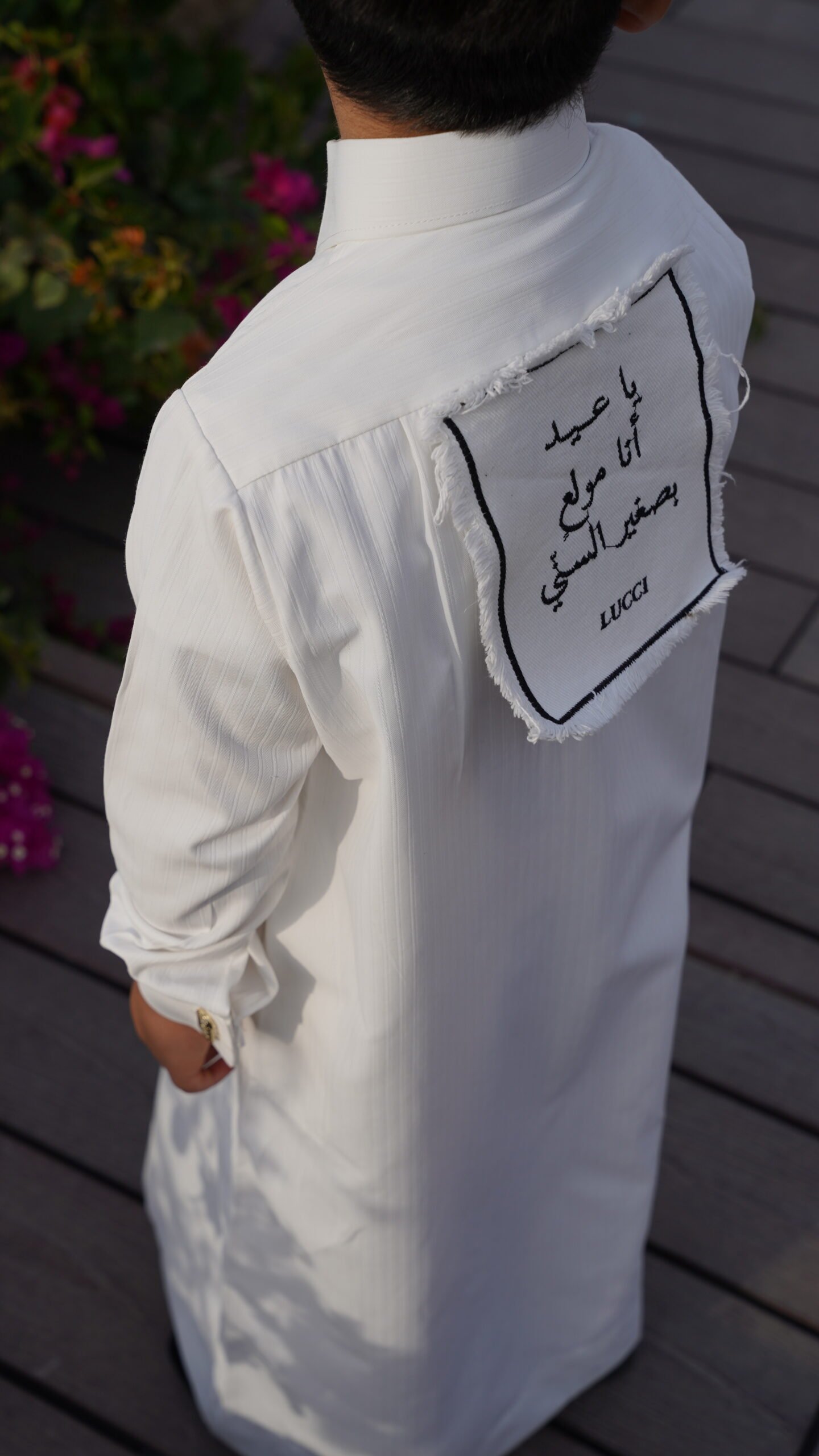 الدشداشة ساده اللوقو في الامام ، في حال اضافة تطريز في الامام اللوقو في الخلف