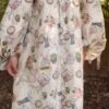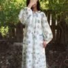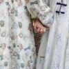 دراعة Timeless دراعة كلوش كاملة من قماش حرير مطبوع، بتصميم انسيابي يبدأ من الأعلى ويتوسع من الأسفل، مع فتحة Round Neckوأكمام منفوخة تنتهي بتجميع عند المعصم، مزينة بنقشة تجمع بين الساعات والورود بتدرجات هادئة، مناسبة لإطلالات رمضان والمناسبات الخاصة للأطفال.